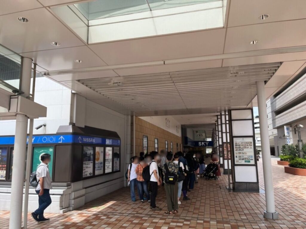 最初に国道1号線を歩道橋で渡り、そごう横浜スカイビルの間を抜けていきます。スカイビルにはポケモンセンターヨコハマがあるのですが開店前に行列ができていました。入場整理券を受け取る列のようです。ここはよく通るのですが行列ができていることが多いです。