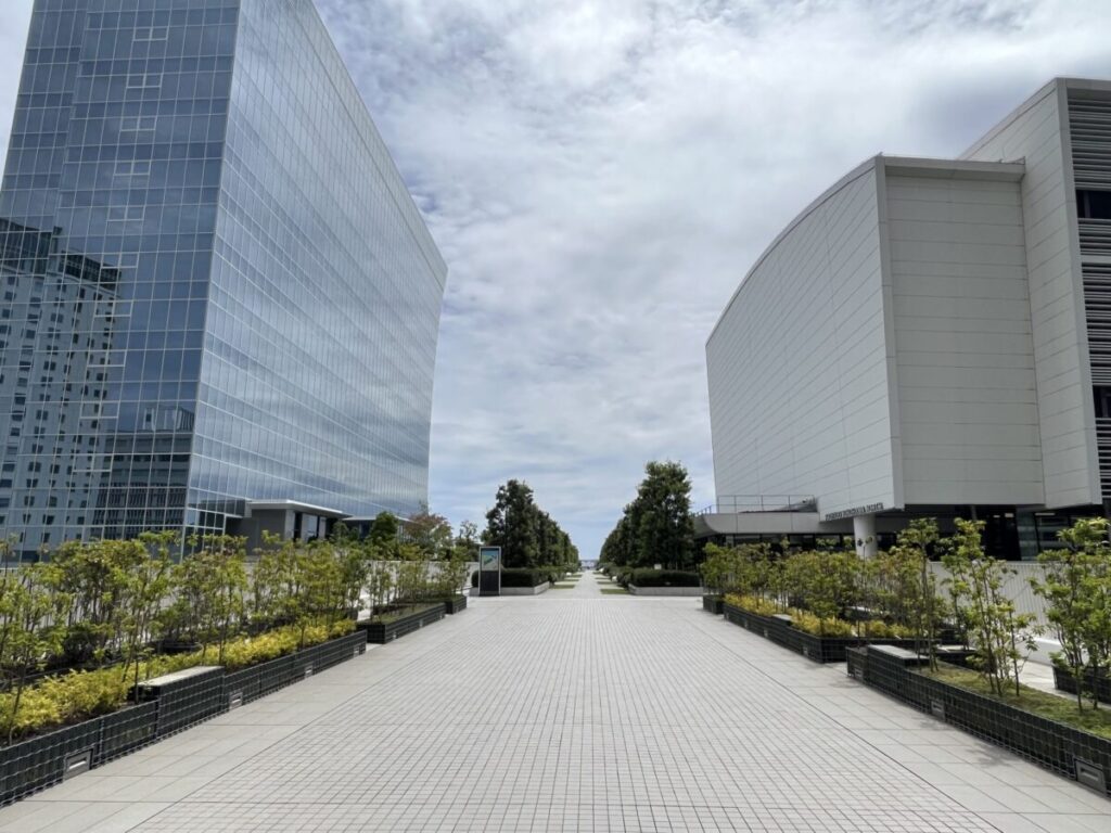 仕方ないので、とちのき通りに出て、道路沿いを走ります。高島中央公園では公園の中を突っ切り、ザ・カハラ・ホテル&リゾート横浜パシフィコ横浜ノースの間を通る歩行者専用の通路?を通ると、臨港パークにたどり着きます。