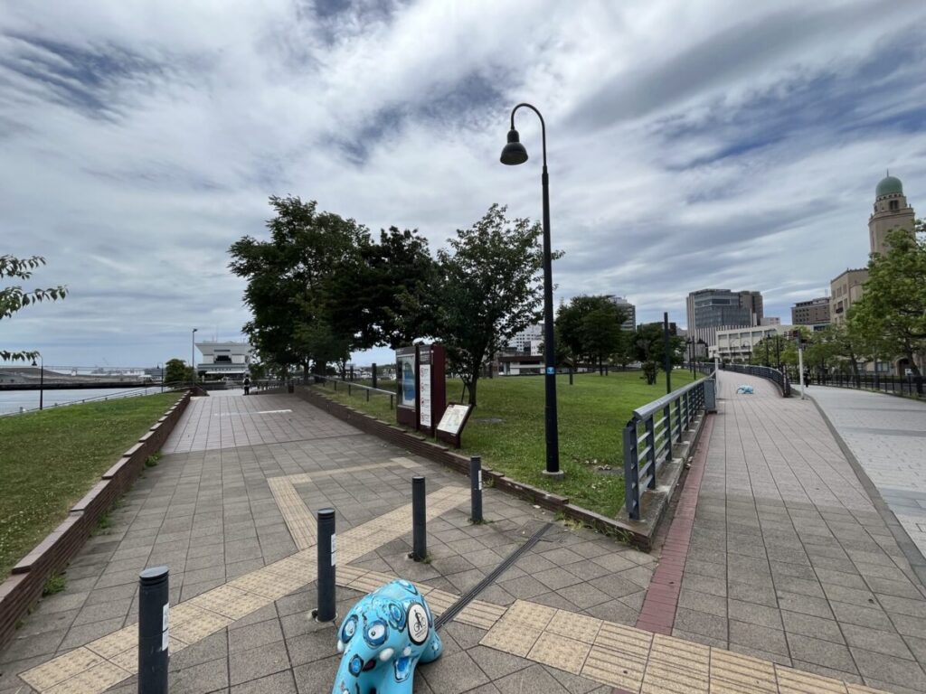 山下公園の海沿いを走り、GUNDAM FACTORY YOKOHAMAを横目に見ながら、公園の終わりと思っていたところの階段を上がると横浜人形の家に抜けられます。