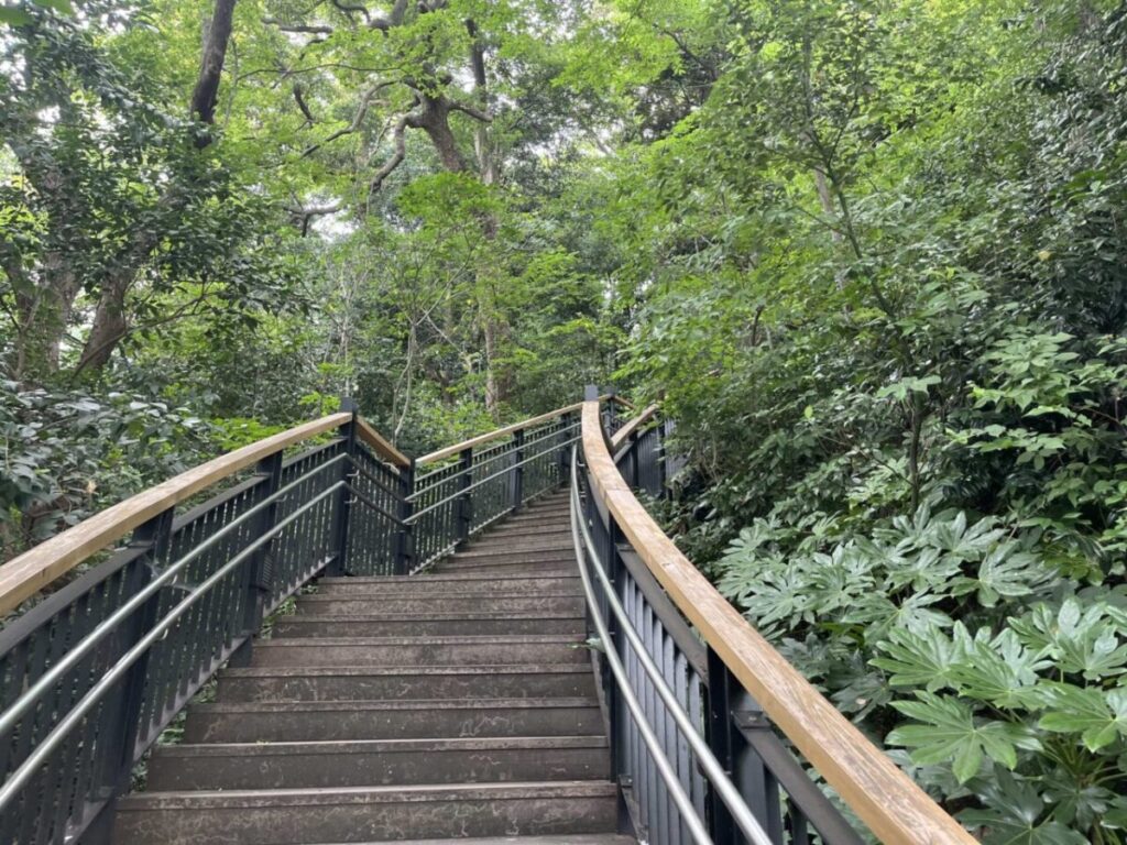 最初と最後に高低差がありますが、最初は横浜駅東口から国道1号線を渡る歩道橋です。こんなに高くはなさそうに見えますが。最後は港の見える丘公園への階段でこれは本当に高低差あります。